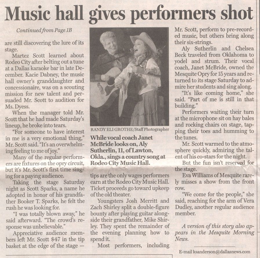 Janet McBride in the Dallas Morning News February 17, 2005