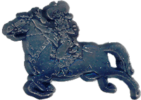 Cowgirls are easy to love! A treasured momento is this cowgirl pin, which works like a tie pin. In natural light it has a shiny, reflective surface. Here is the scanner capture.