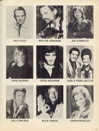 Homes of the Stars Photo of Billy WalkerJanet sent the 1975 edition of "Music City's Homes of the Stars" magazine, which includes a section of portrait photos for numerous popular stars. One of those photos was of Billy Walker and, in light of his May, 2006 passing, we include it here. Billy Walker's Photo (retouched) Page which includes Billy Walker's Photo Homes of the Stars Magazine Cover - 1975 -o- |